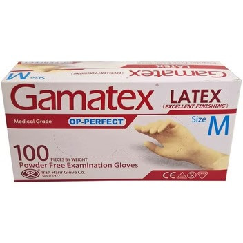 دستکش لاتکس گاما تکس بدون پودر ۱۰۰عددی سایز مدیوم